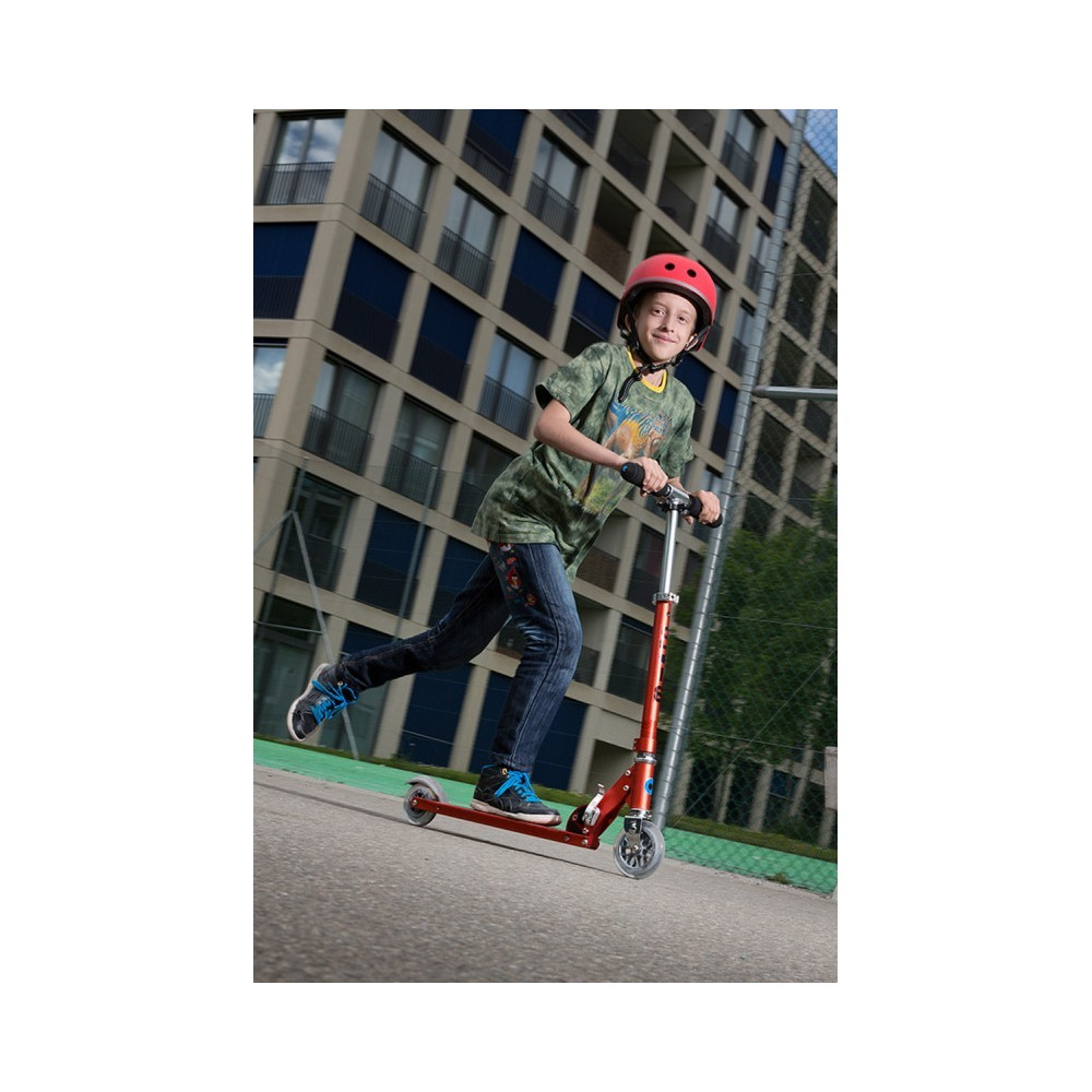 Ohne viele Extras und trotzdem in gewohnter Micro Qualität, das ist der micro scooter sprite in elegantem rot. Bedingt durch seine kompakte Grösse ist er ein echtes Leichtgewicht und daher auch für Kinder oder Anfänger der ideale Micro Scooter. Seine Leichtigkeit zahlt sich nicht nur beim Tragen des Scooters aus, sondern sorgt auch für eineeinfache Handhabung beim Fahren. Dieser wendige Alu Scooter ist bereits seit Jahren ein beliebter Begleiter – auf dem Schulweg, aber auch zum Pendeln. Der micro scooter sprite ist nebst klassisch in rot, alu oder schwarz , auch in den Trendfarben purple, pink, oasis blau und saphir erhältlich.