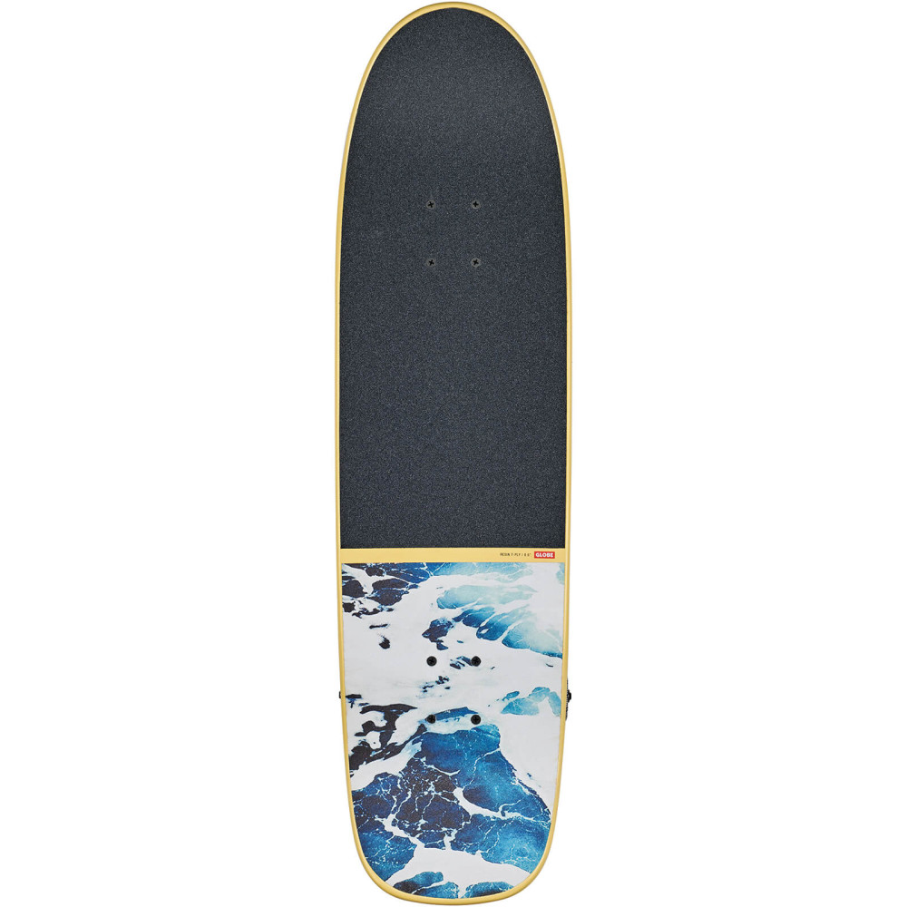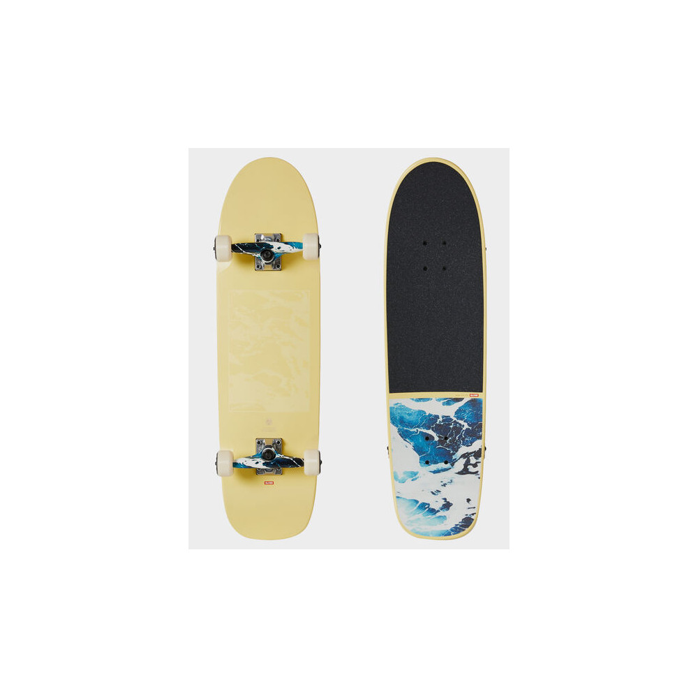 Der Shooter in der Farbe Yellow/ComeHell ist ein 8,625". Der Shape ist komplett, um beim Shredden eine gute Zeit zu haben. Es ist aus Resin-7 Hard Rock Maple mit kanadischen Ahorn-Kreuzlagen und Mellow Concave mit steilem Nose- und Tail-Kick gefertigt. Es verfügt über 6.0" Tensor Alloys und 55mm Conical 101a Rollen mit Split black und gedrucktem Griptape. Es kommt mit schwarzem Split und bedrucktem Griptape, mattem Finish auf glänzendem, in Farbe getauchtem Deck und Truck-Hängern passend zum Griptape.