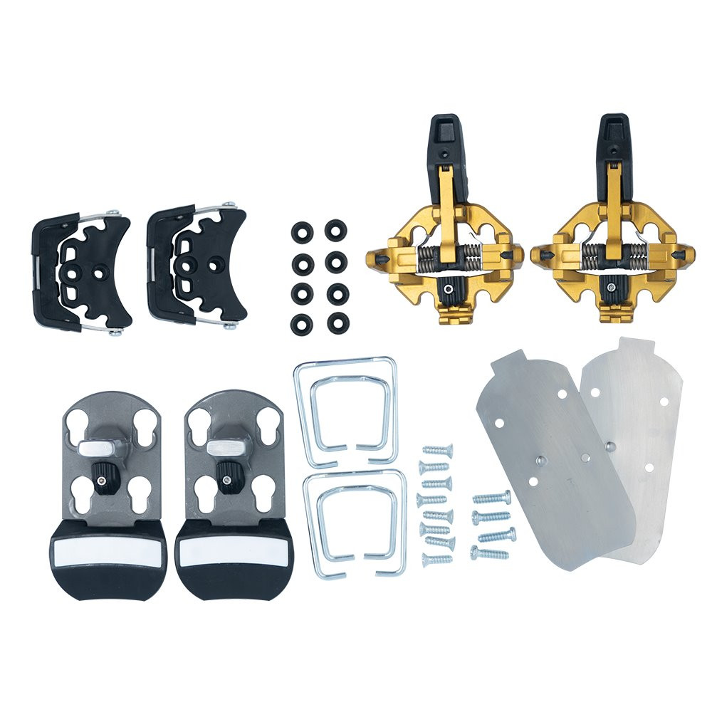 The Cast Freetour Upgrade Kit includes all of the components you will need to add touring capabilities to your Look Pivot 15 or 18 alpine bindings and utilizes the same Look Pivot hole pattern. Look Pivot 12 and 14 alpine bindings DO NOT work with the Cast Freetour Upgrade Kit. The Cast Freetour Upgrade Kit does not include Look Pivot 15 or 18 alpine bindings. If you need those, purchase our Cast Freetour Pivot 15 or 18 bindings with the Cast Freetour Upgrade Kit already installed.
