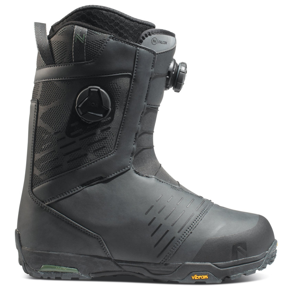 With the brand new Falcon boot you will handle the mountains with confidence. The forward lean increases response, while an array of insulating features are key for pre-dawn starts or snow camping missions. Three innovative, asymmetrical features set it apart. We designed the new asymmetrical lace-path Dual Zone Boa® with rugged looking TX laces and H4 Coiler™ Technology that customizes fit with precision instantly, the asymmetrical 3D-molded tongue keeps pressure off the ridge of your foot, and the sleekly redesigned Gold-Level ASYM Thermo Heat Moldable liner which features a new asymmetrical function this year, with harness closure adds to the overall level of superior heel-hold and percision fit. Developed with the trusted Vibram® sole found on the Talon with its legendary grip, the Falcon is the perfect balance of sporty looking and durable material for riders who want all-around performance with innovations that improve comfort during both the climb up and the ride down.