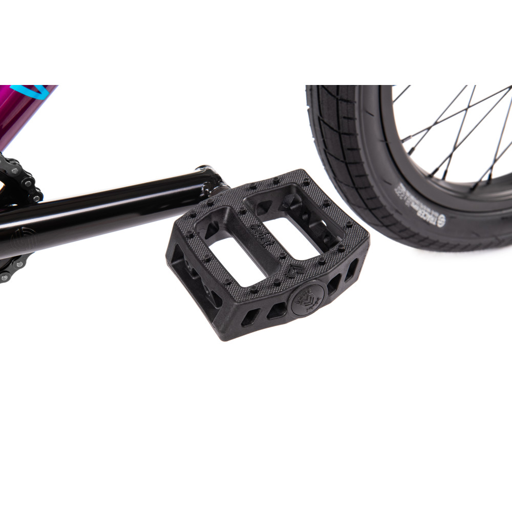 The CRS 18” is a stacked 18" machine which is available in two mesmerising new colourways, and comes loaded with parts most 20” bikes would dream about having. With Éclat (Surge) plastic pedals, a crmo down tube frame, a fully sealed Salt cassette hub, a lighter weight Spanish bottom bracket and now a super short 11.65” chainstay - the CRS 18” has never been so dialed.