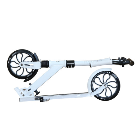 - The scooter rides on two 200mm wheels