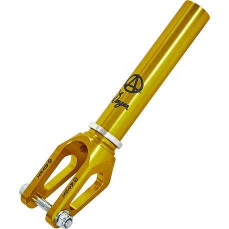 The Apex Quantum pro scooter fork is a strong onepiece pro scooter fork that has been machined from one single piece of 2000 Series Aluminum, with built in removable starnut for optimal compatibility. Extremely light weight and very durable.