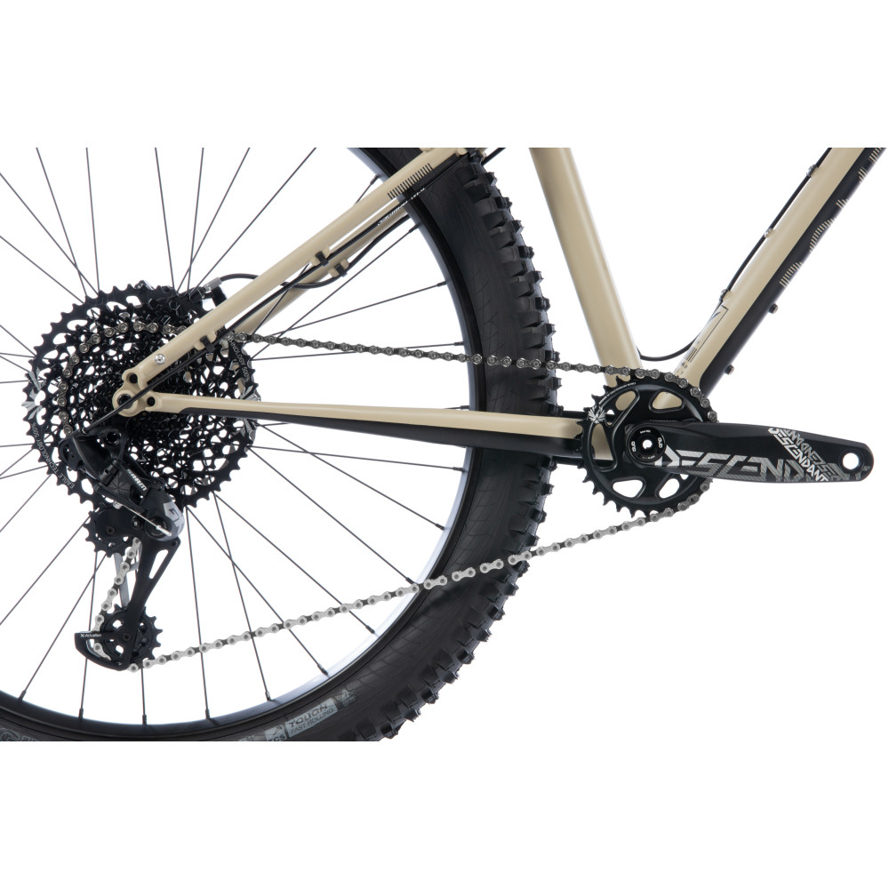 A contemporary trail geometry featuring a long reach and moderate stack mean the Cale is easy on the long-haul, yet fun when the terrain kicks off. Using experience gained building our Beyond+ models, it’s a vehicle for exploring the most technical routes. An MRP Ribbon suspension fork stops the bike getting thrown about to increase control, a quality furthered by its huge 800mm wide bars. With the ability to slam the saddle out of the way courtesy of the KS E30i dropper seatpost, ultra-wide WTB Vigilante TCS tyres and a mountain-shrinking 10-50t cassette make this all the bike most riders will ever need.