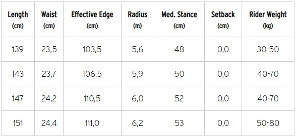 Head - Snowboard Stella- Size Chart
