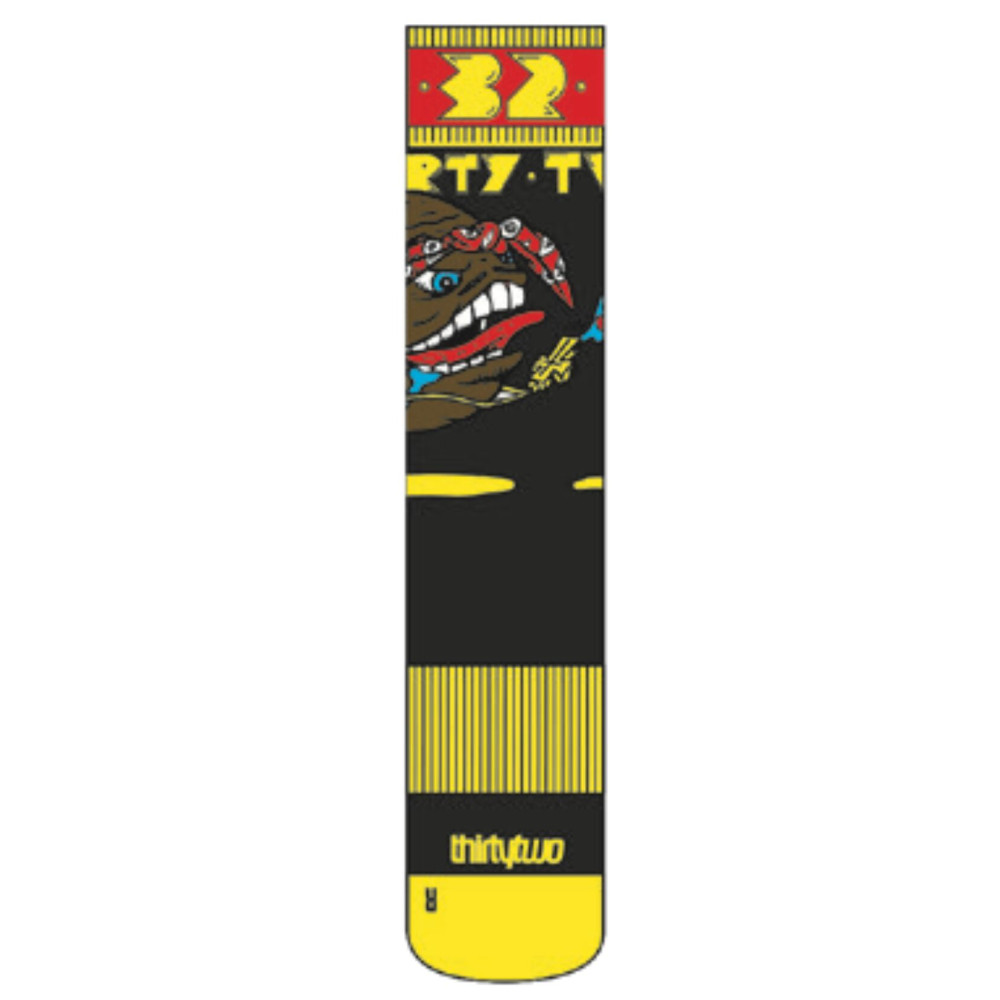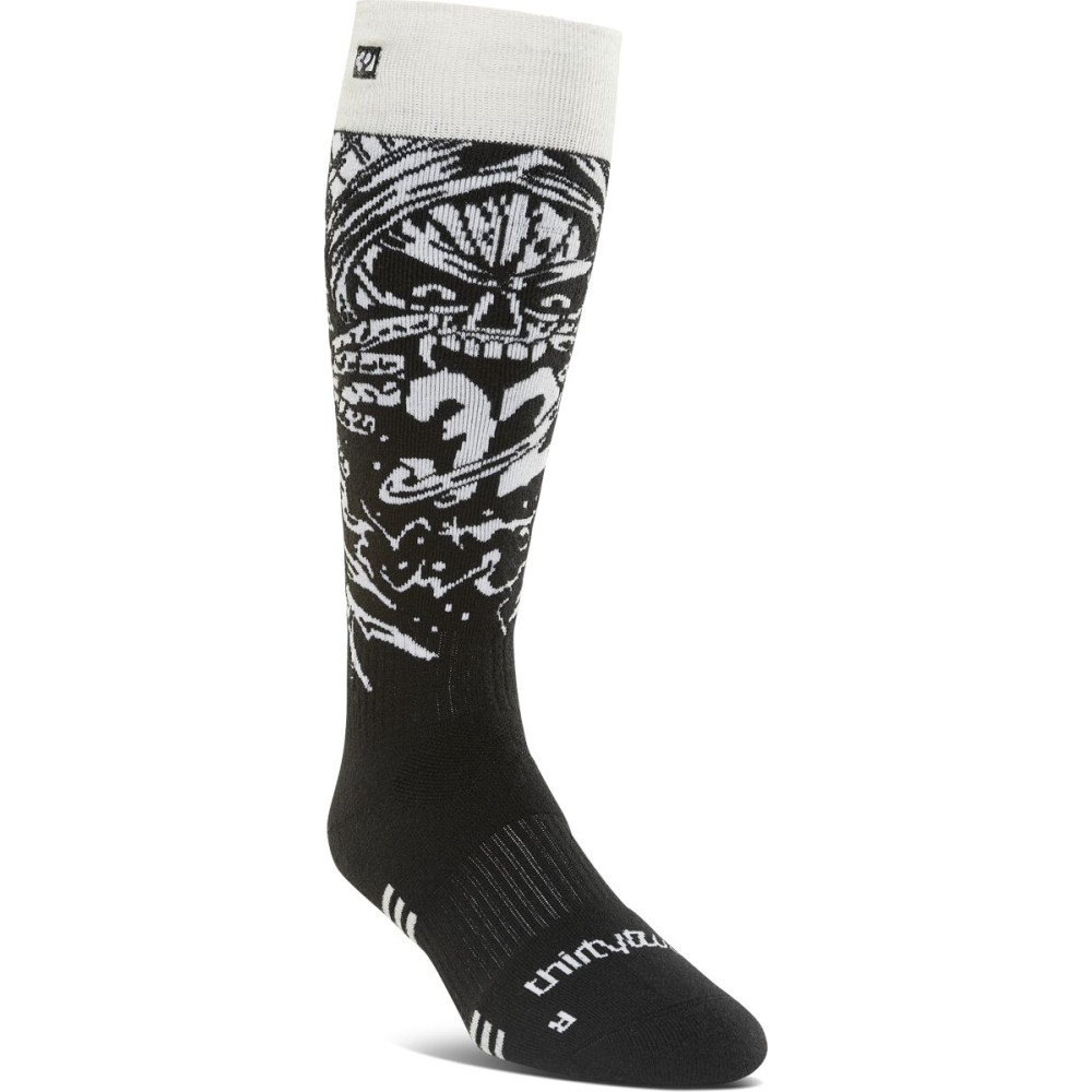 Men’s performance snowboard socks by ThirtyTwo: moisture-wicking knit, stay-put cuff, targeted shin cushioning, arch/ankle support, smooth toe, and reinforced heel/toe. One Size, Black. Reliable comfort and control for resort laps, park, and powder.