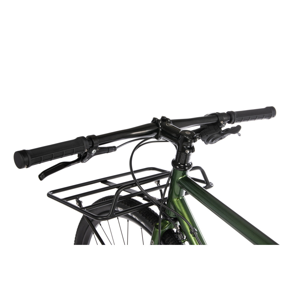 Modern grocery-getter or forward thinking explorer? With a front rack fitted as standard, the utilitarian Arise Geared can haul supplies across a range of terrain. Using a wide 11 – 42 T cassette and single chainring to provide durable and sequential gears, its 40C tyres keep things comfortable and stable. Shimano hydraulic brakes require little attention yet provide excellent stopping power. With a radical dropped top tube on the two smallest sizes, all frames benefit from through-axles, along with a full complement of mounting points and routing for dynamo lights.