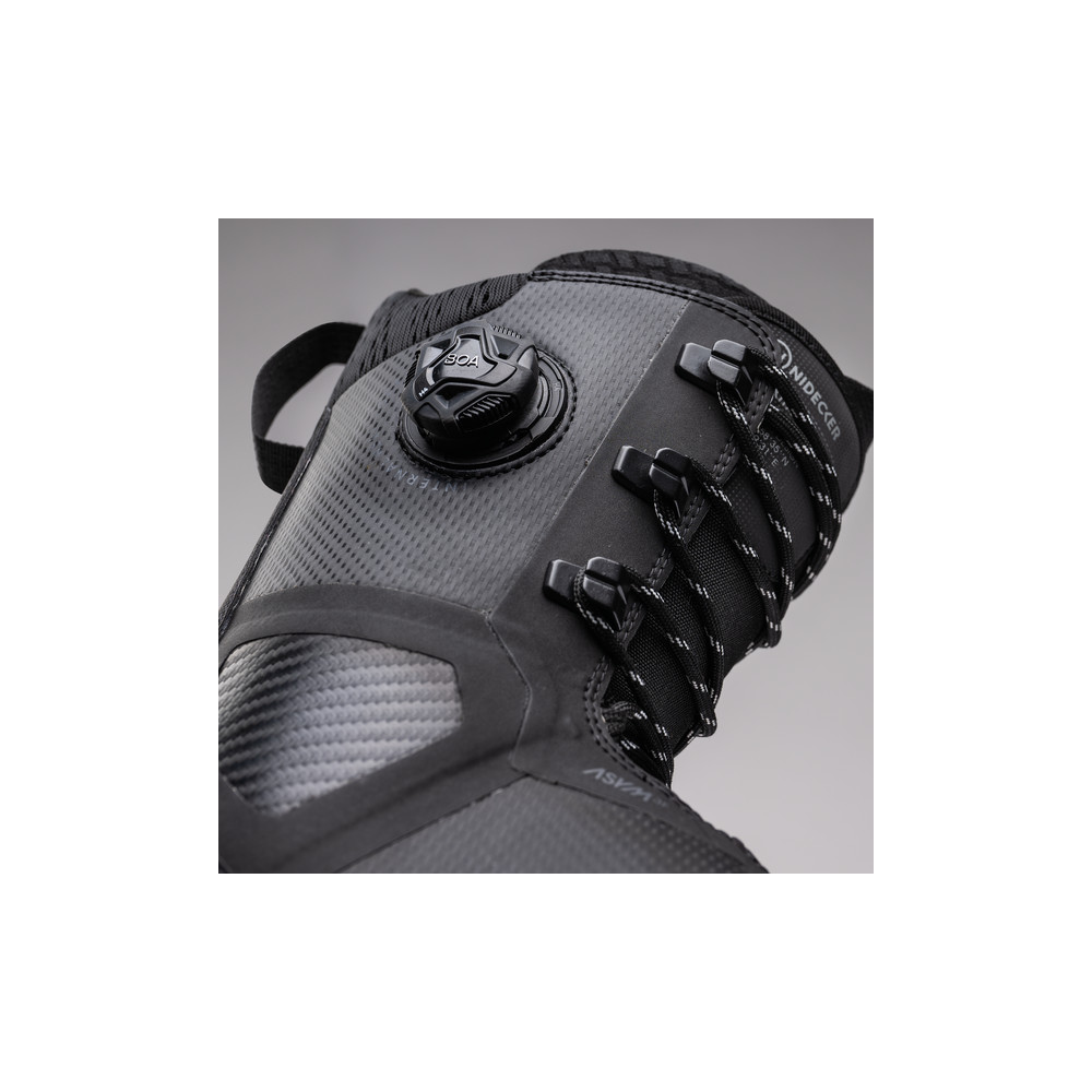 Joueuses et précises. Les Nidecker Rift Women 2026 combinent double Boa, chausson thermoformable et flex intermédiaire pour un maintien du talon sûr, du confort et du contrôle. Accroche légère, fit femme, tailles 22.0–26.5, coloris Black ou Aqua Blue.