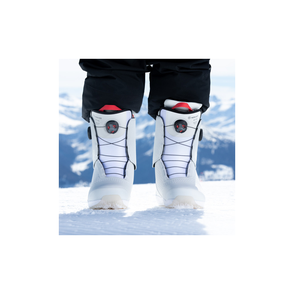 Nidecker Altai Men 2026 : boots all-mountain freeride au flex intermédiaire-rigide, laçage Boa double zone, maintien du talon et chausson thermoformable. Amorti léger, traction en caoutchouc. Couleurs Purple, Black, Bone White. Tailles 25.0–31.5.