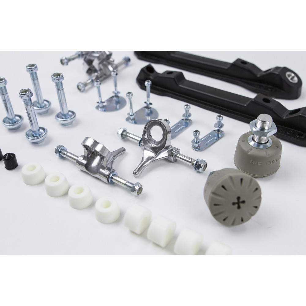 Rio Roller Nylon & Fibre Chassis Adjustable Stopper Thread Rio Roller Adjustable Rubber Stopper Included Rio Truck Polished Finish Rio Fixed Kingpin Rio Bushings 95A SHR Fixing Plates Including Washers and Nuts |