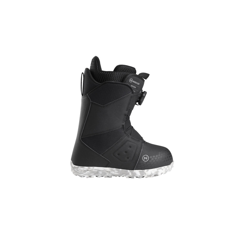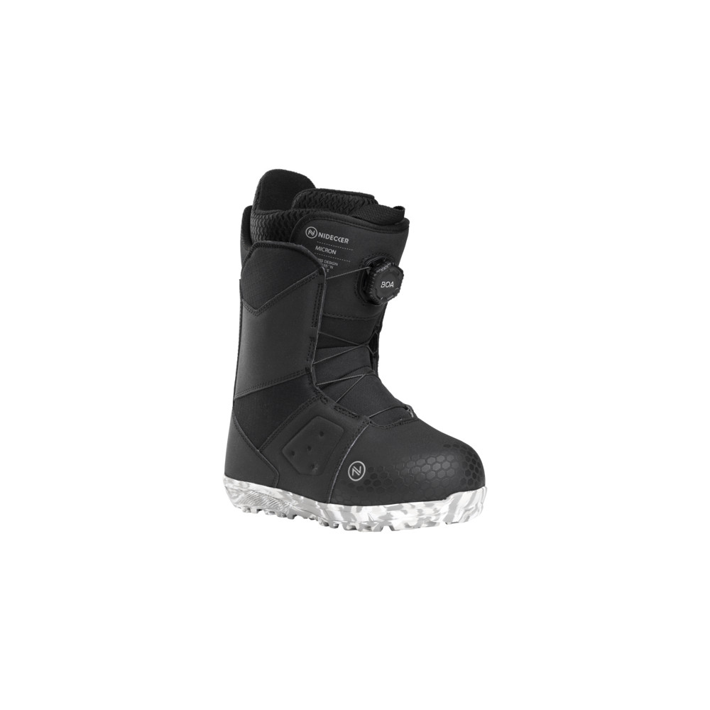 Bottes de snowboard enfant légères au flex souple pour des débuts faciles. Enfilage rapide, doublure chaude et respirante, amorti EVA et semelle adhérente. Nidecker Micron Mini 2026, coloris Black, tailles 17.0–22.0 pour les jeunes riders.