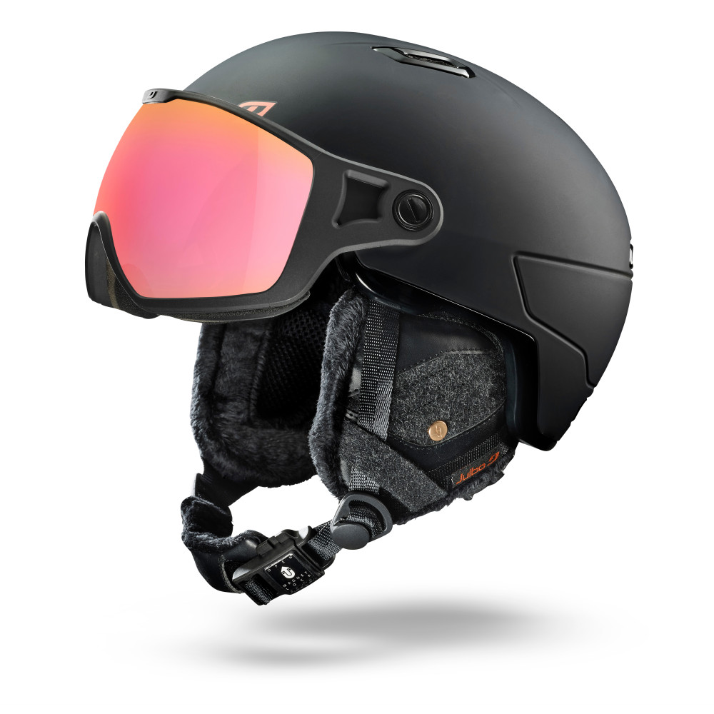 L'ergonomie et la protection des casques JULBO s'associent au meilleur de la ventilation et de la vision actives grâce à une visière photochromique REACTIV. Comme les coussinets d'oreille 3D et la fermeture magnétique, les finitions ici sont haut de gamme et sophistiquées. Avec GLOBE, JULBO propose aux skieurs qui aiment les avantages d'une visière (champ de vision, protection et confort), un casque léger et compact qui ne fait aucun compromis sur le style ou les performances.