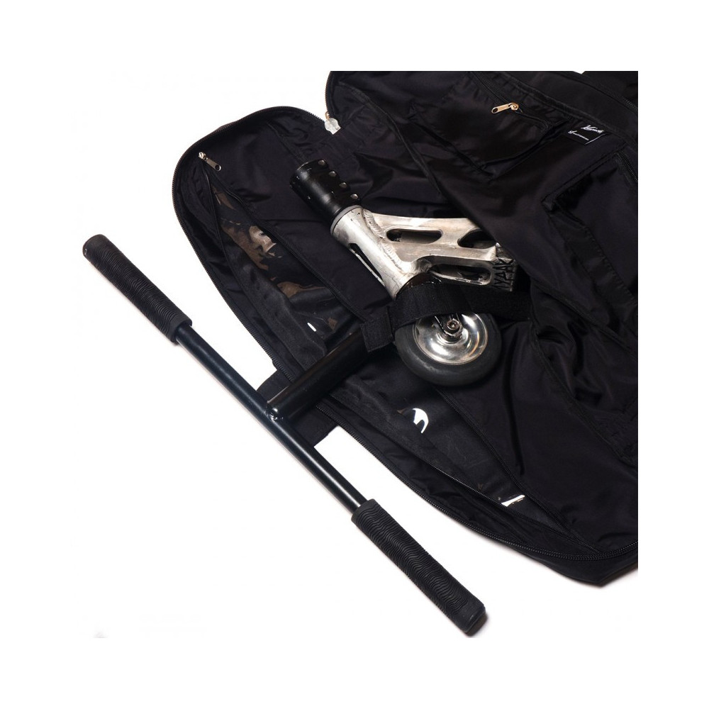 Des velcros permettent de correctement maintenir les éléments de la trottinette dans le sac.