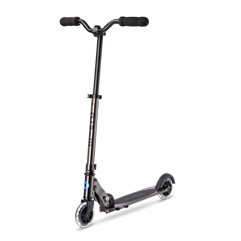 Enhanced with LED wheels both in the front and rear, the classic Micro Scooter boasts an extra touch of style with its black neochrome finish. Its compact size and lightweight construction ensure effortless handling and easy portability. Designed to accommodate children and adults weighing up to 100 kg, this scooter guarantees a smooth and enjoyable ride for users of all ages.