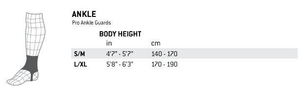 G-Form - Ankle - Tableau des tailles