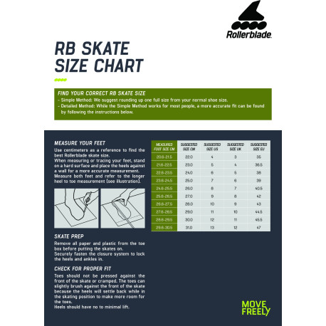 Powerblade - RB 110 3WD - Tableau des tailles