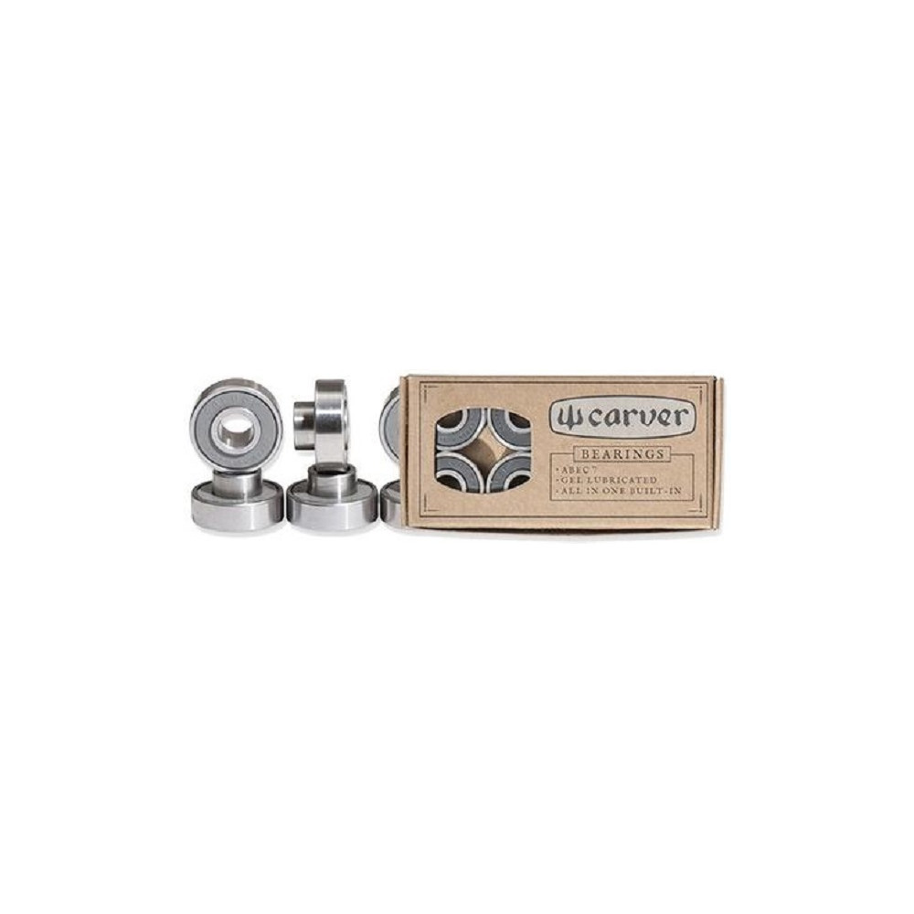 Carver Abec 7 Built-Ins are the ultimate bearing for speed, performance, and durability. Built with hardened Rockwell C-65 grade steel and precision grooved inner races, these bearings provide an ultra smooth ride with low rolling rolling resistance, less overall friction, and a longer bearing life. The built-in spacers and speed rings allow for an easy and hassle free installation creating a solid and perfectly centered set up.