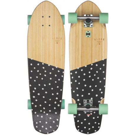 The Big Blazer in colour Bamboo/Dotted is a GLOBE medium length diamond-tail cruiser with built-in bottle opener and soft conical wheels. It is available in size 32" x 9.125" x 17.75"WB. It is made of Bamboo. It has a mellow concave with kick tail and 6.0" Tensor alloy wrapped trucks with 62mm 83a wheels. It features a printed griptape.
