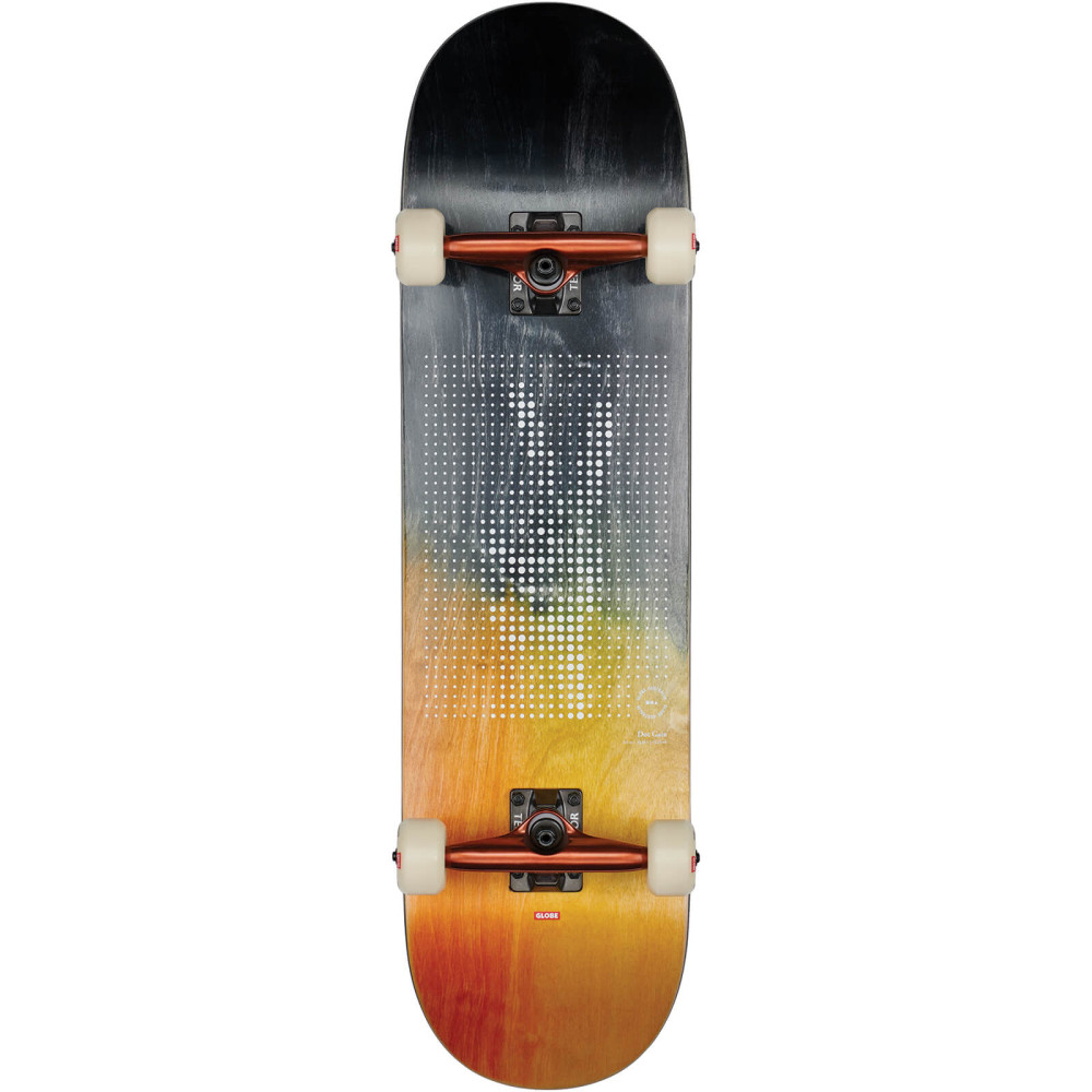 Le G2 Dot Grain en couleur Peace est un 8,5". Elle présente des détails artistiques et esthétiques sur le meilleur complet que l'on puisse acheter. Elle est fabriquée en érable dur Resin-7 avec un concave complet. Il dispose de 6.0" Tensor Alloys trucks avec des kingpins creux avec 55mm 101a roues. Elle est livrée avec une bande noire divisée avec impression et des placages lavés à la teinture avec un dessin à l'encre en relief.
