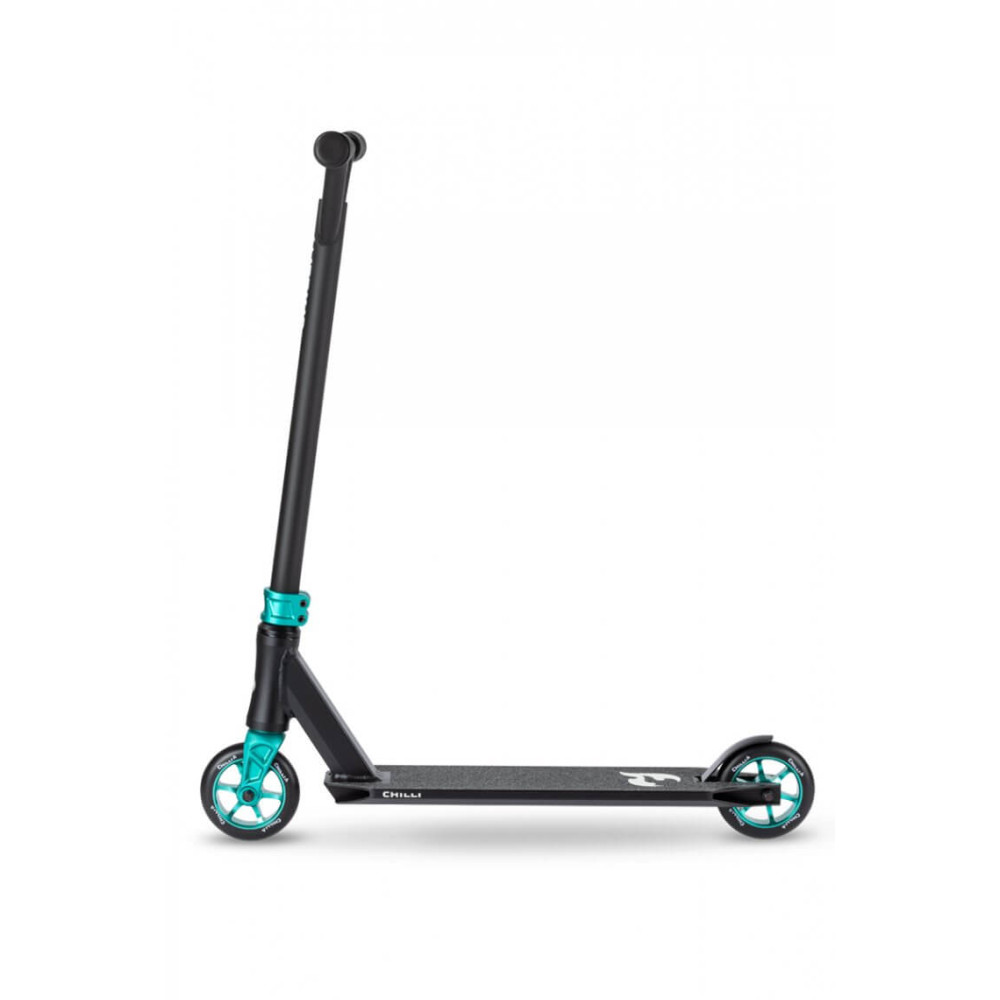 Trop grand pour le 3000 mais encore trop petit pour le 5000 ? Le Chilli 4000er forme le juste milieu entre les deux scooters. La barre en T robuste en acier au chrome-molybdène a une hauteur de 53 cm. Le deck en aluminium léger est particulièrement adapté aux premiers tricks dans le park. De plus, la trottinette est équipée d'un système de compression Pro Spider HIC et de roues à noyau en aluminium de 110 mm avec roulements ABEC 9 et rebond extra élevé. Parfaitement adapté aux jeunes cavaliers qui veulent aller haut.