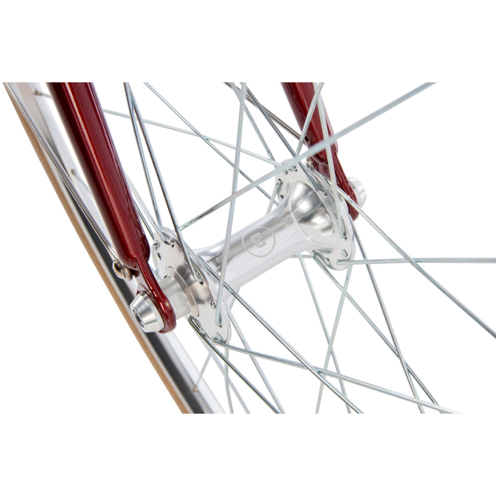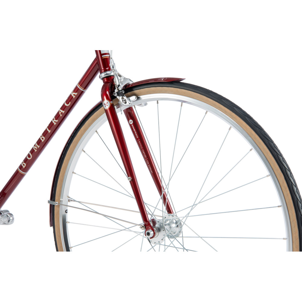 Arrive in style on the single-speed Oxbridge. With frame coloured metal fenders and tan wall tyres, its looks come from a different age, yet its manners remain properly modern. A high headtube and low bottom bracket make for predictable handling and come paired with a quick to adjust quill stem to provide a comfy position. Driving things forward, its easy spinning 16 x 44 T gearing is suited to moderately paced riding, and won’t cause you to stall if pointed uphill. Bombtrack’s Drome sealed hubs round off a package that’s both classic and forward thinking.