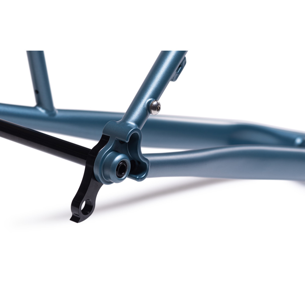Double butted suspension corrected crmo frame with rack and fender mounts and BSA bottom bracket.